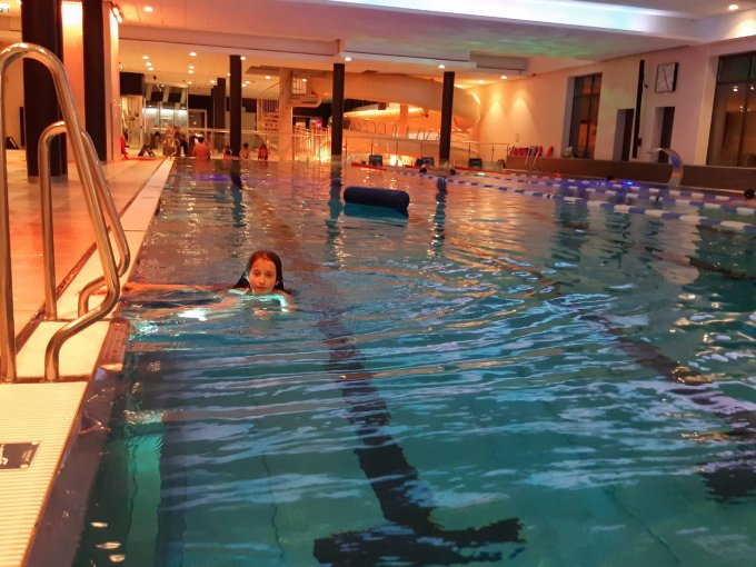 Сегодня долго плавала в бассейне. Этот бассейн считается одним из лучших в Норвегии, он включает в себя детский бассейн для малышей, большой взрослый с дорожками, терапевтический для пожилых, "крутящийся" бассейн, 2 джакузи, огромную водную горку, две парных, сауну + большой тренажёрный зал. В определённые часы  попасть на бесплатные занятия по аквааэробике для взрослых.