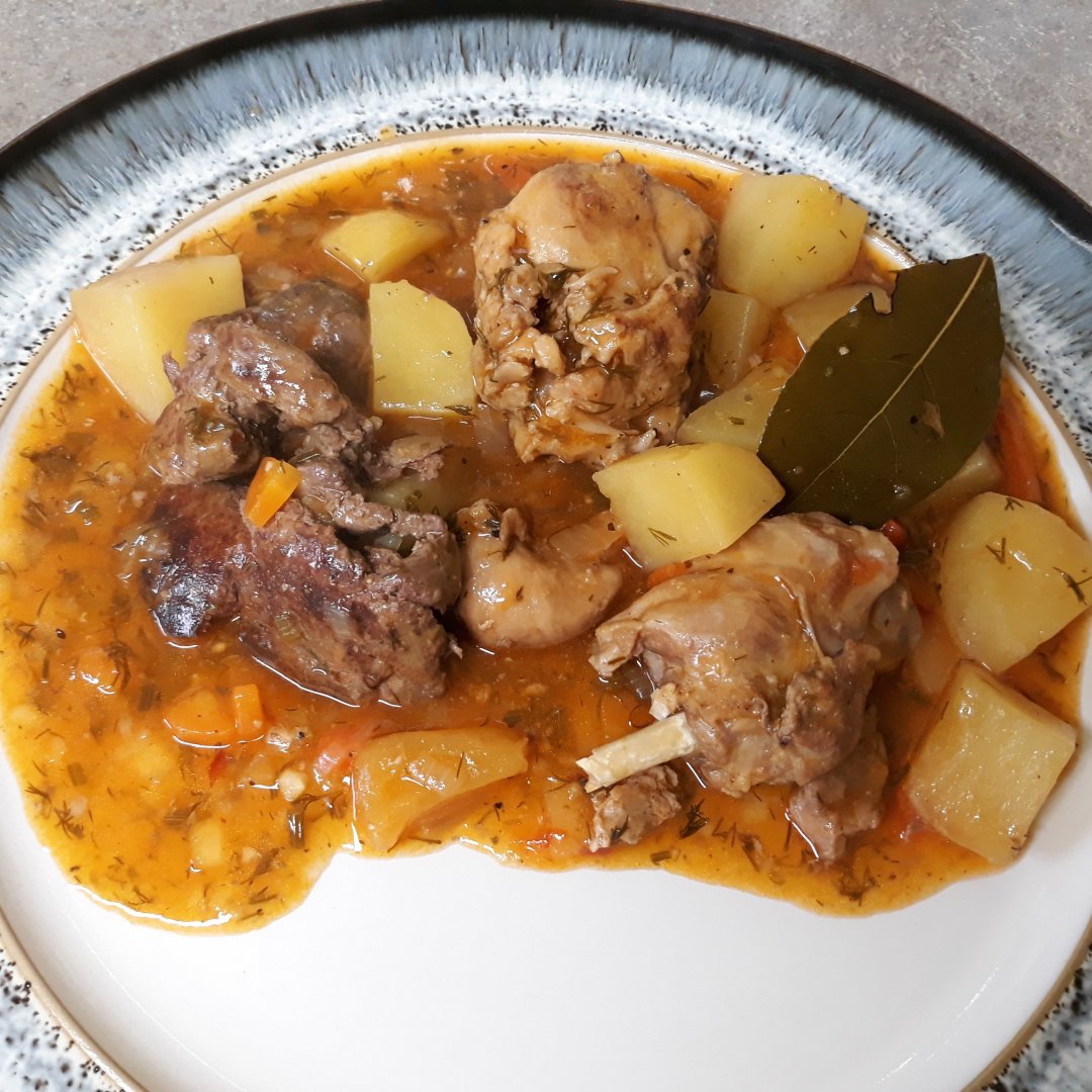 Жаркое из кролика с соусом " Uncle Ben's " ( можно заменить на томатную пасту)