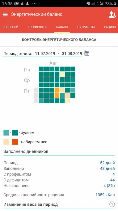 Чтобы увидеть отчеты по питанию и график веса, необходимо войти.