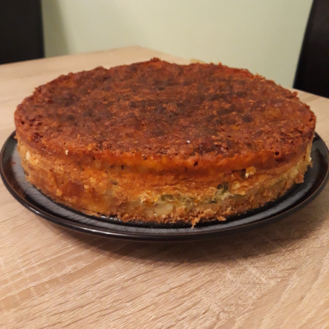 Духовку разогреть до 180°. Выпекать 40мин. За 10 мин посыпать сыром. Дать настояться 4 часа.