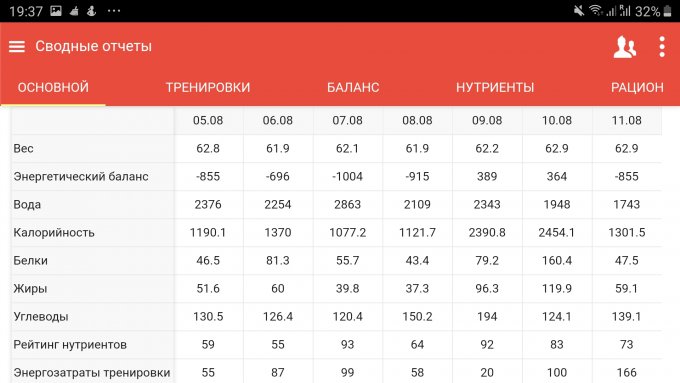 | Итого за день | 2252 | 1121 | 43 | 37 | 150 |