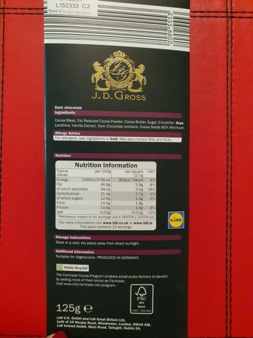 | Чёрный шоколад " J.D. Gross " - 85% cocao * |