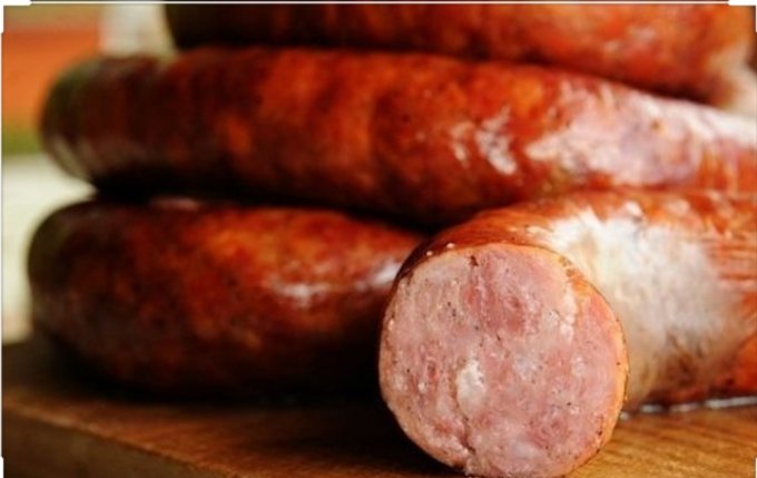 | Братвурст, сарделька, из говядины и свинины, копченая |