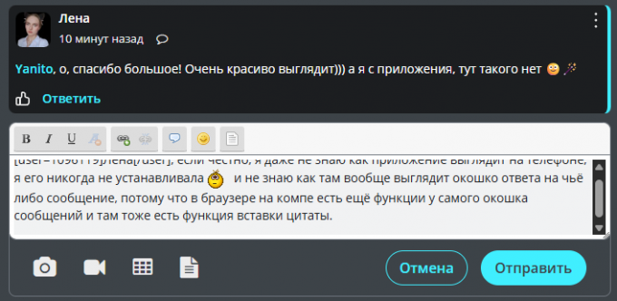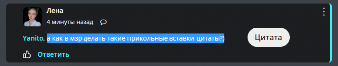 и там тоже есть функция вставки цитаты. Yanito написал: