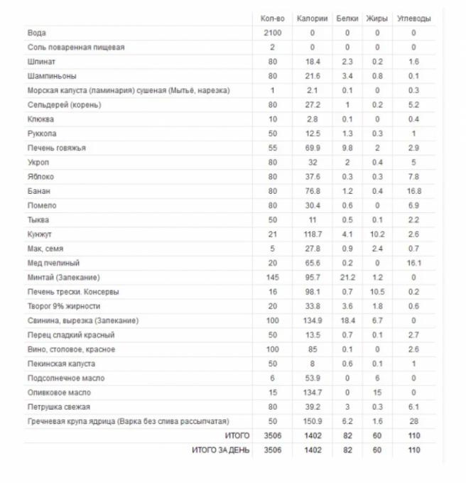 | Кол-во | Калории | Белки | Жиры | Углеводы | |