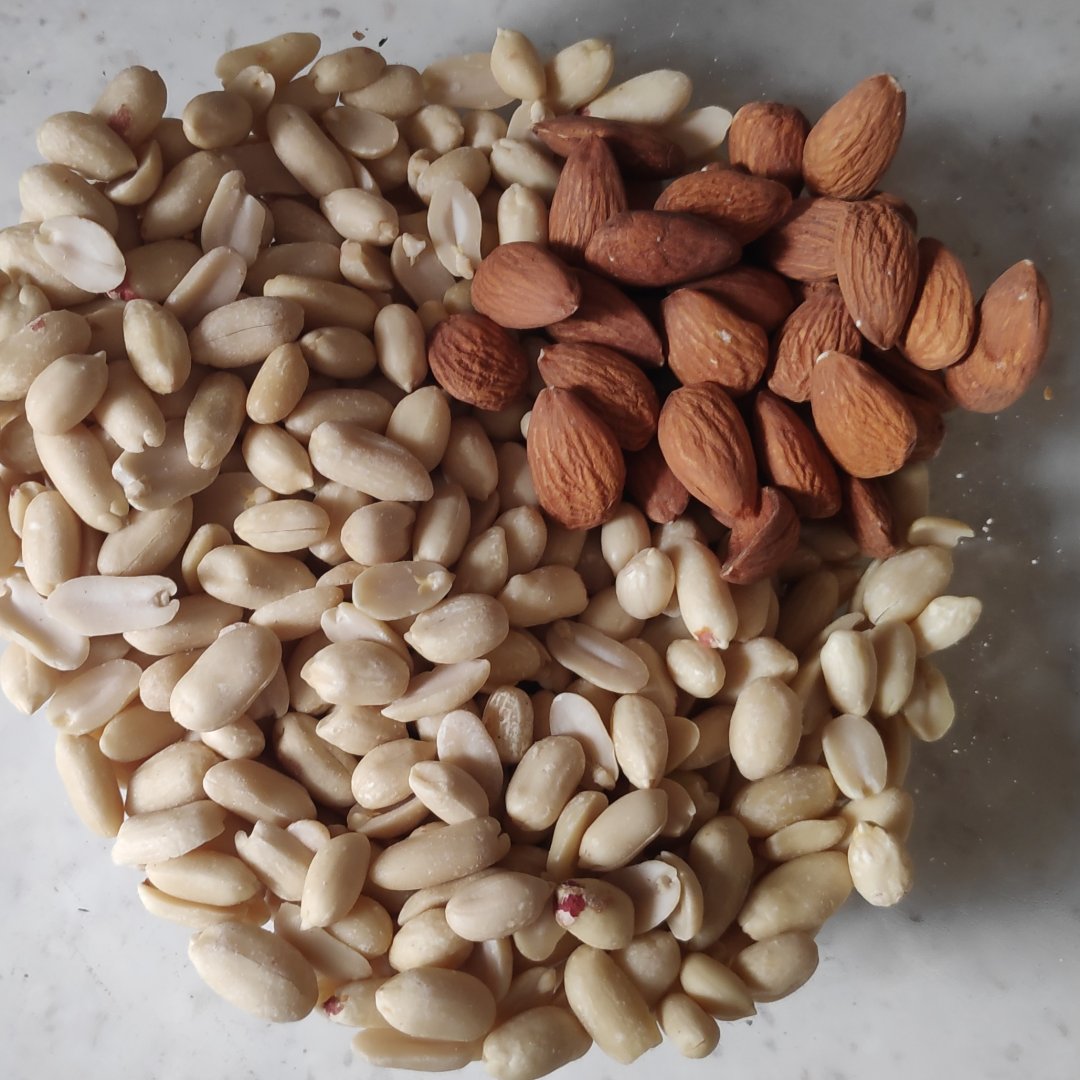 Если арахис у вас неочищеный от кожицы, то нужно подсушить его на сковородке или в духовке и очистить. У меня сразу был очищеный и этот шаг я пропустила.