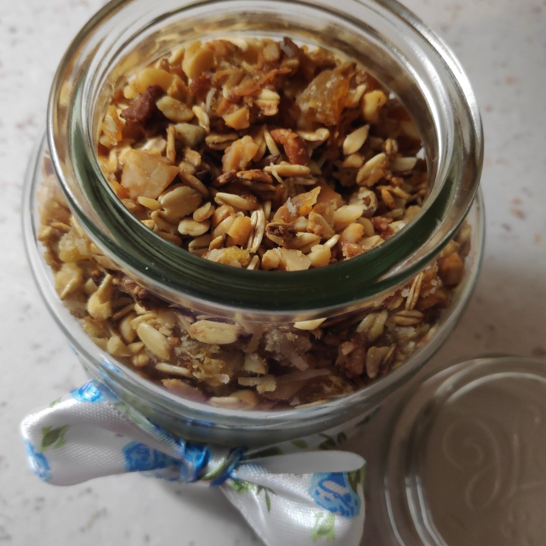 Хранится такая гранола до 2 месяцев при комнатной температуре.