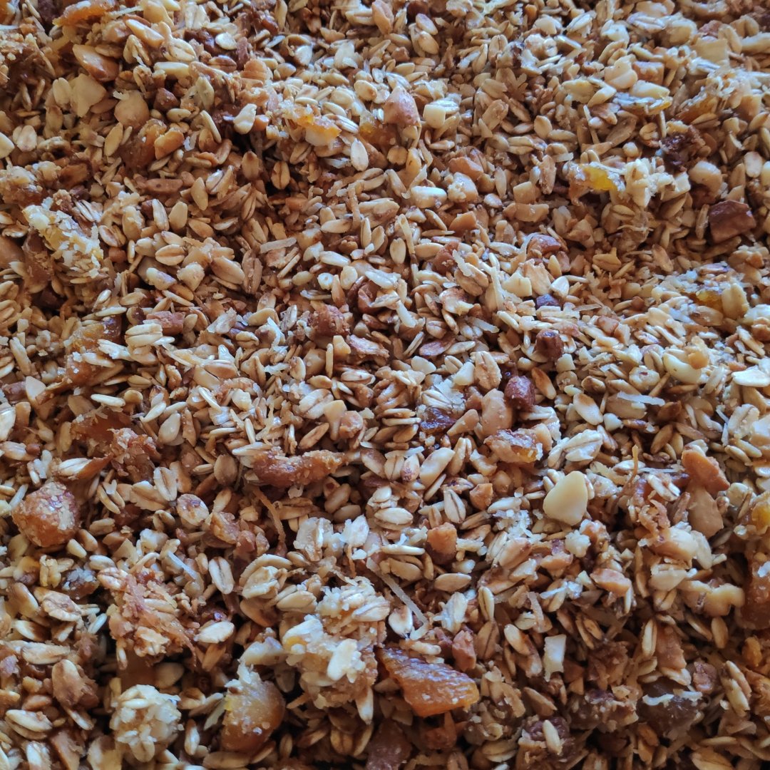 Остужаем готовую гранолу до комнатной температуры, перемешиваем что бы была рассыпчатой и перелаживаем в емкость для хранения.
