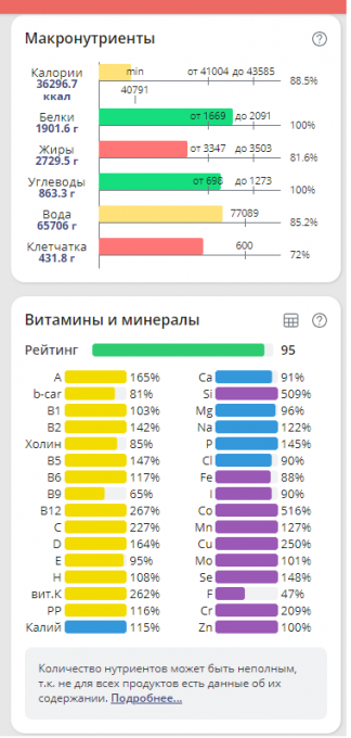 | Итого за день | 2590 | 1038 | 65 | 71 | 30 |