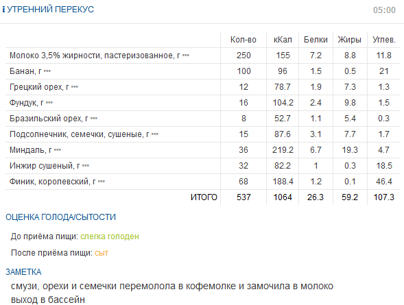| Итого за день | 2140 | 1202 | 110 | 45 | 85 |