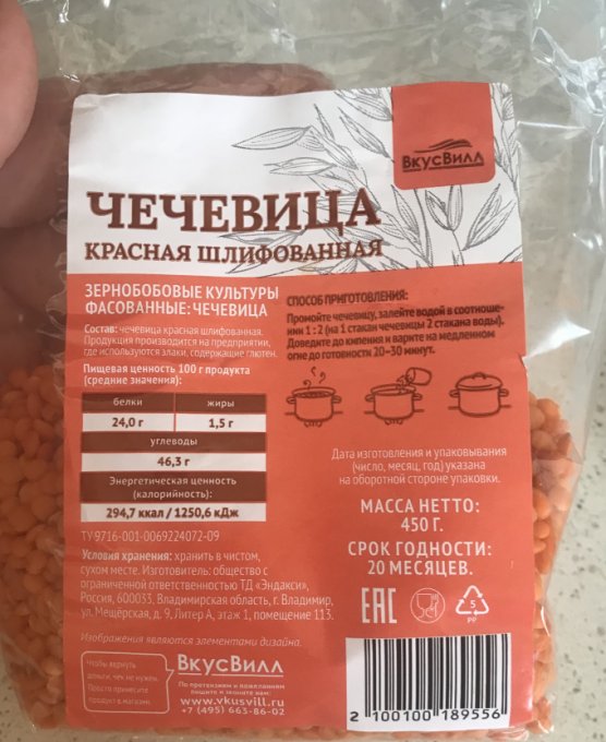 | Чечевица, розовая | 20 г |