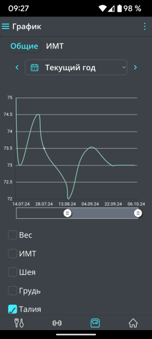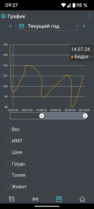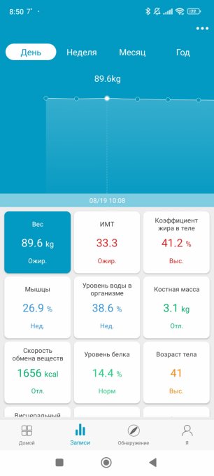 Данные с сайта, данные весов, данные с браслета (данные на один и тот же вес).