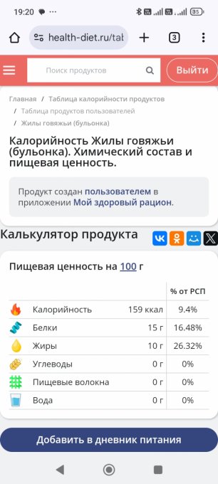 | Кол-во | Калории | Белки | Жиры | Углеводы | |