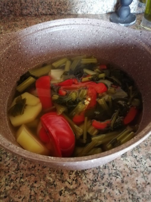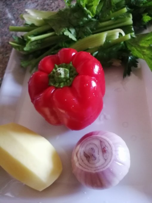 Суп - пюре из сельдерея. Калории на 100гр-18.7 бжу 0.7 /0.1 /3.8.Вода - 1250мл, перец красный сладкий - 164гр, картофель - 170гр, лук - 97гр, сельдерей - 205гр, соль - 3гр. Отварить все овощи минут 30 и взбить ручным блендером.