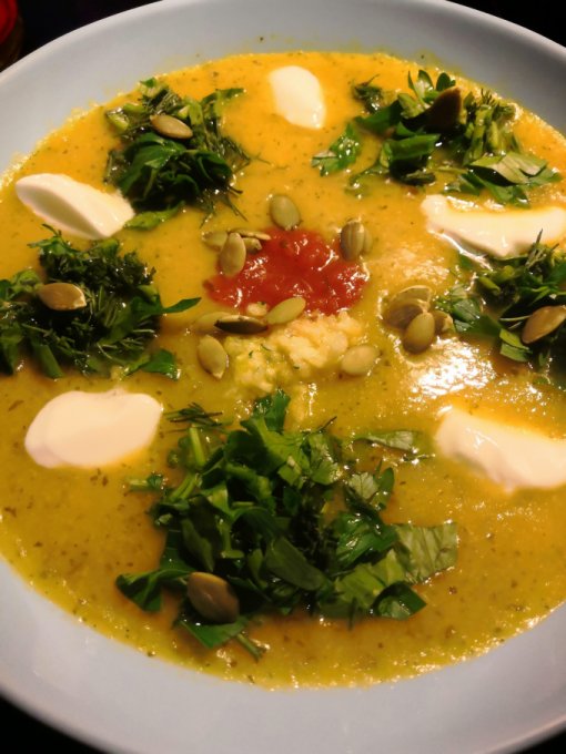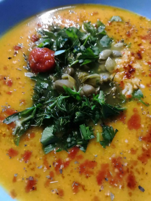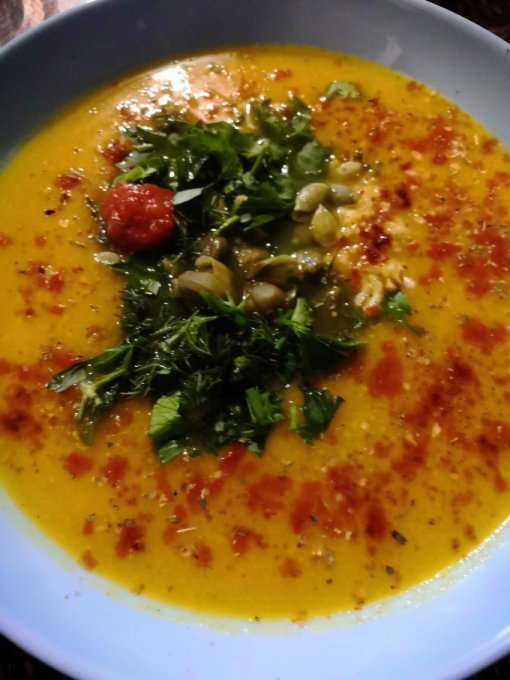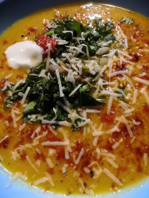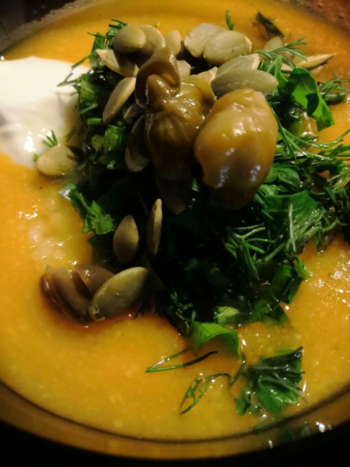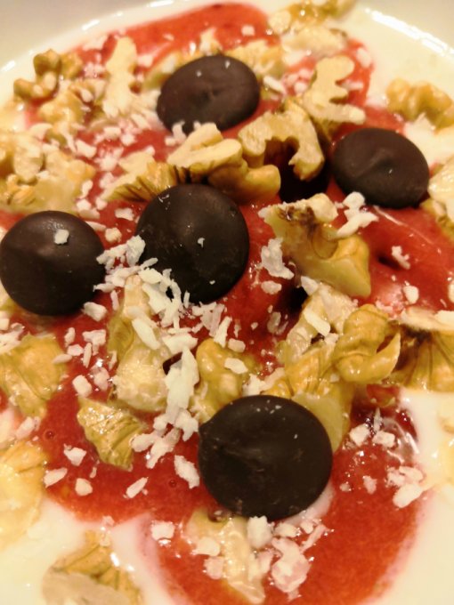 У сына вчера и сегодня температура поднималась до 37,2, каких-либо симптомов больше не наблюдается, у меня пока всё нормально, будем мониторить)) На завтрак сегодня был вкусный и полезный салатик из творога, свежей моркови  и изюма с ложечкой ароматного липового мёда с частной пасеки, поднял настроение своим нежно-лососевым цветом и приятным вкусом. На обед овощной крем-суп со шпинатной лепешкой и компот  из груш, яблок и красной и черной смородины. На ужин вкусные куриные котлетки с гречкой и томатами. В перекус капучино и десерт из домашнего йогурта с клубнично- вишневым  сорбетом и грецкими орехами с шоколадными каплями. Сыты и довольны)) Теперь не помешает подвигаться)) Здоровья всем!