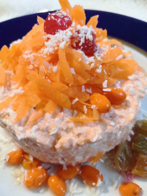 Салат из моркови, творога, и изюма с йогуртом и медом