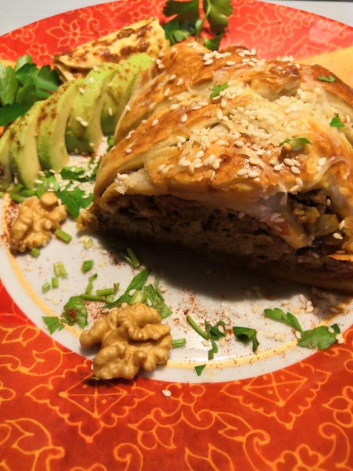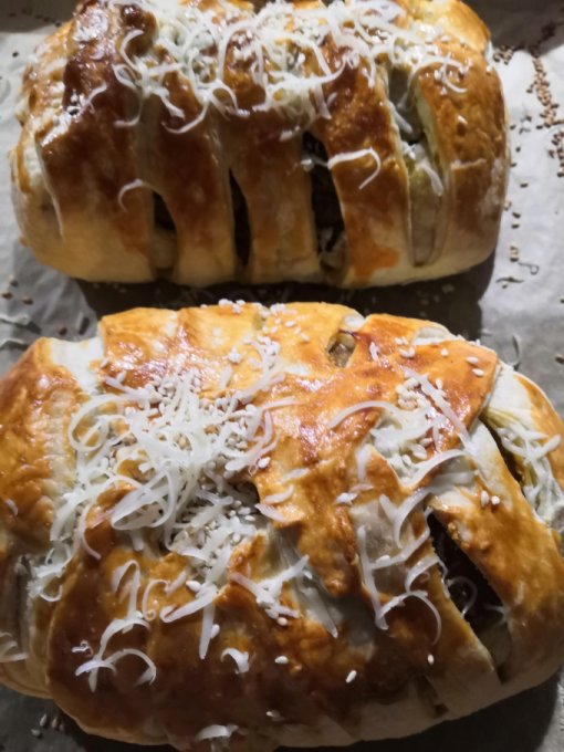 | Рулет из слоеного теста с говядиной, сыром и яйцом |
