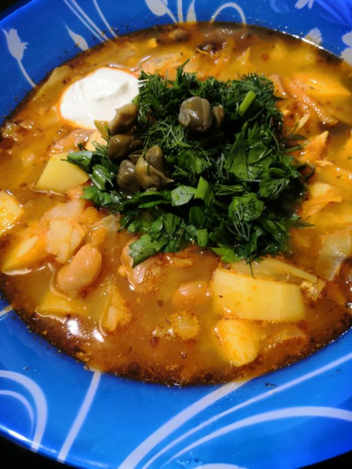 | Компот из груш, яблок, черной и красной смородины с курагой |