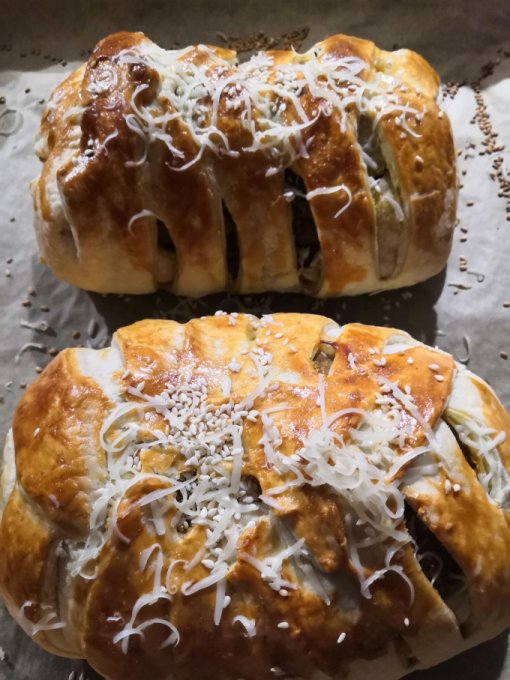 | Рулет из слоеного теста с говядиной, сыром и яйцом |