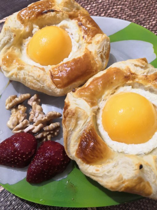 | Слойки с творогом и персиками и желе из персиков и черники |