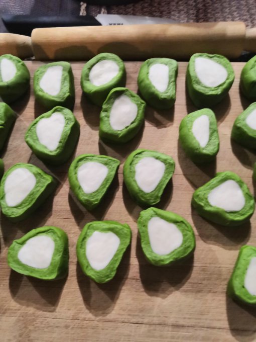 не бойся, они из-за шпината зеленые)) натур продукт, а начинка из
