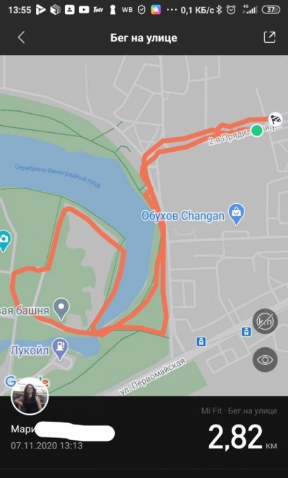 Уже не так тяжело, как в самом начале. Время тренировки 30 минут. В конце тренировки зашла в магазин и забыла выключить трекер.
