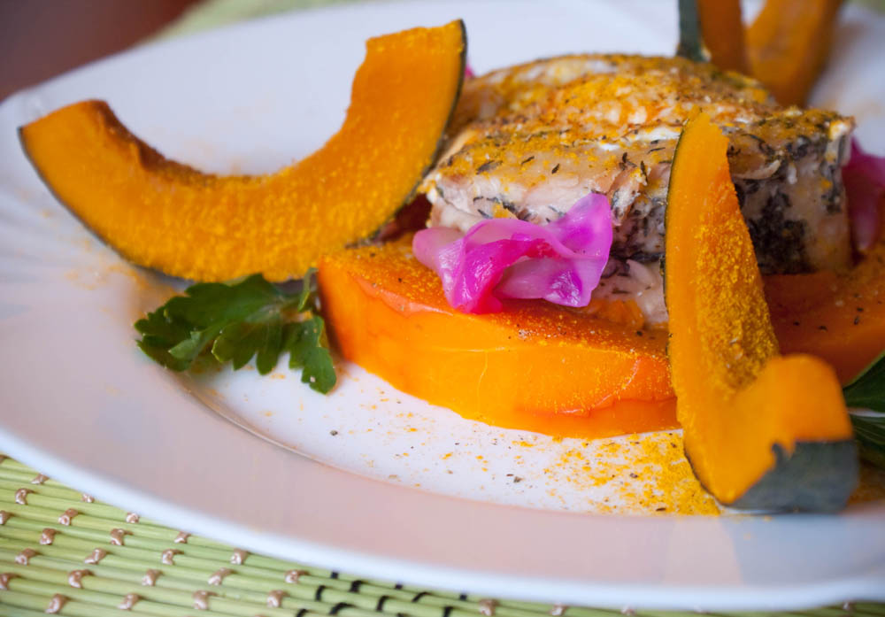 пару приготовила тыкву. Выкладываем все фигурно на тарелку,