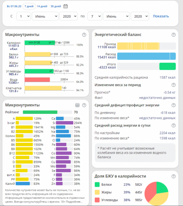 Чтобы увидеть отчеты по питанию и график веса, необходимо войти.