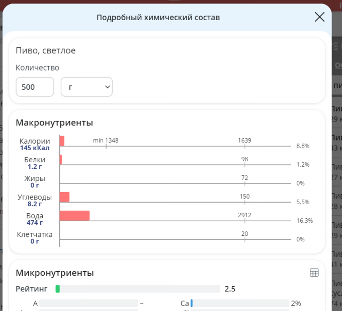 | Кол-во | Калории | Белки | Жиры | Углеводы | |