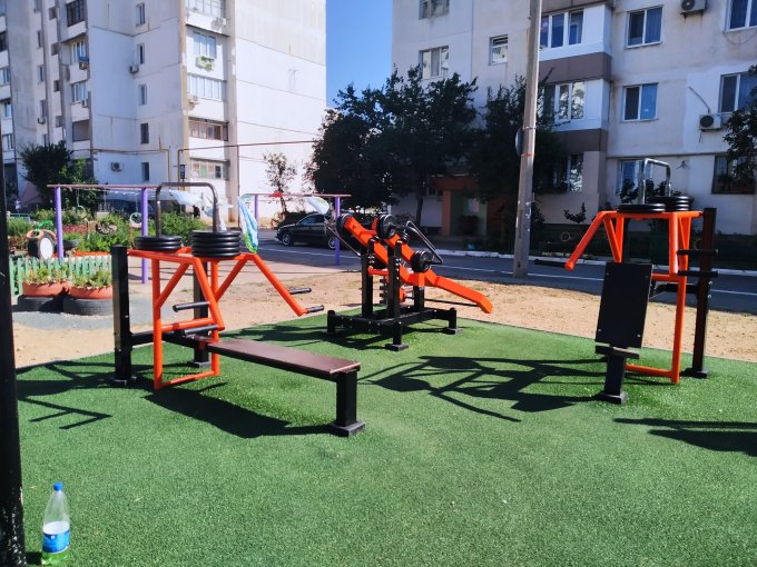 Кардио было в 8 утра. Силовая тренировка на улице. У нас в городе несколько адаптированный из-за карантина площадок. Из-за дел сегодня перебьюсь на них.