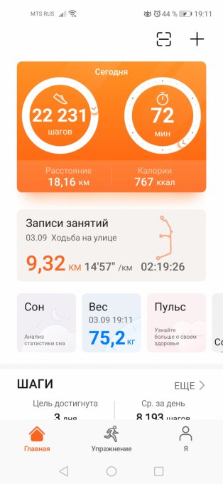 Сегодня поставила свой рекорд за этот месяц - 22231 шаг. Давно так
