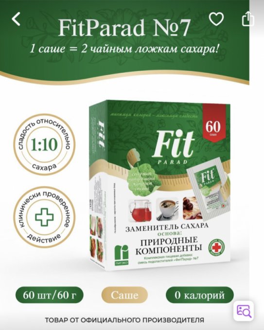 №8 https://fitparade.ru/katalog/innovatsionnye-sakharozameniteli/fitparad-8/fitparad-8-doypak-250g/