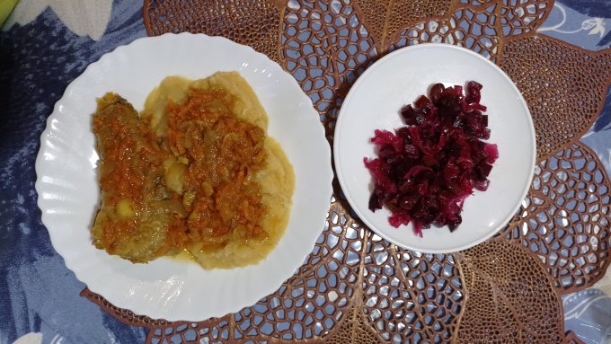 | Минтай тушеный с овощами |