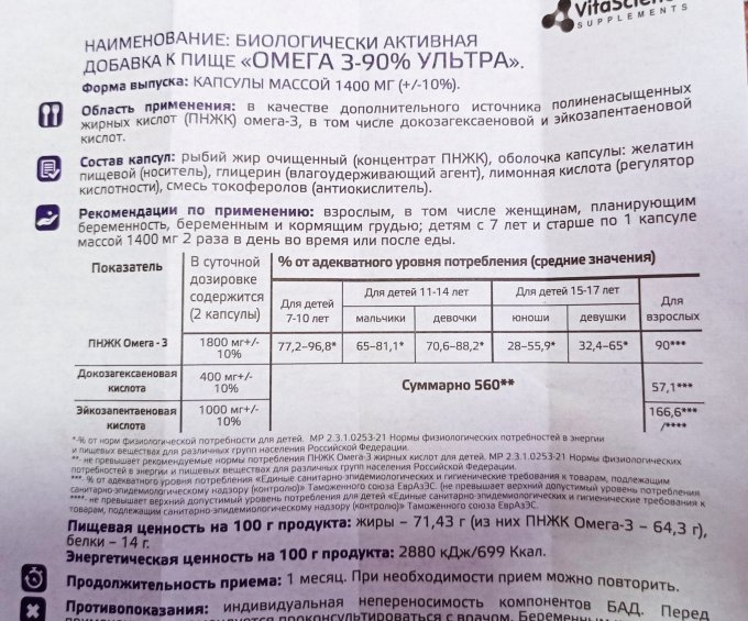 | Омега 3 Ультра VitaScience |
