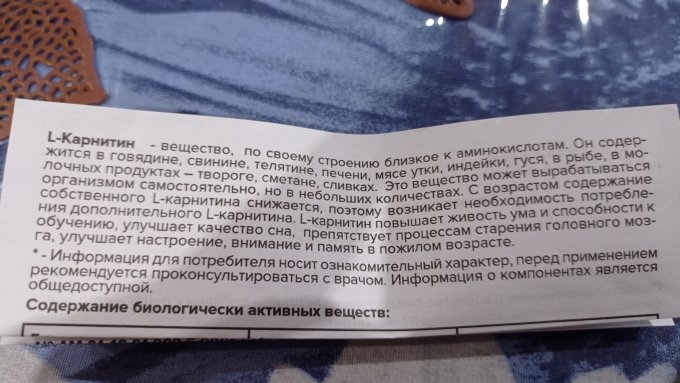 л-карнитина в инструкции (( первый раз вижу, что
