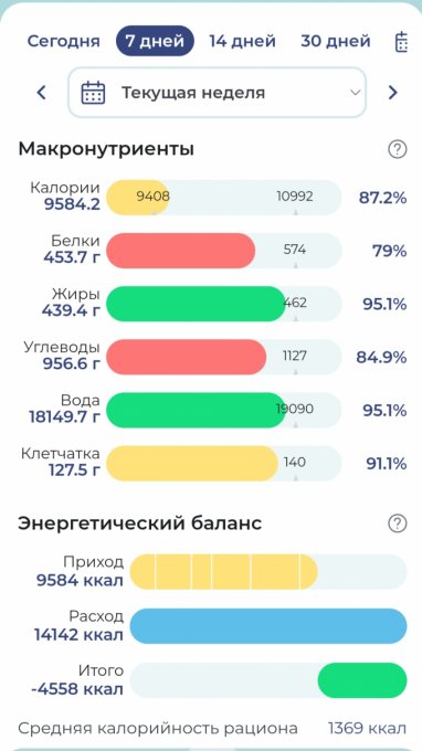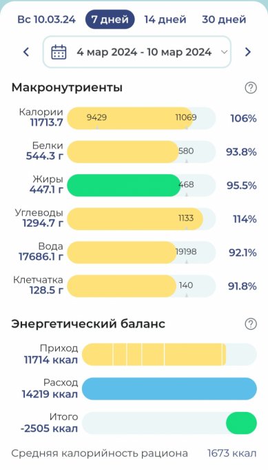 | Итого за день | 3141 | 1459 | 100 | 62 | 124 |