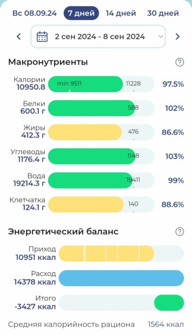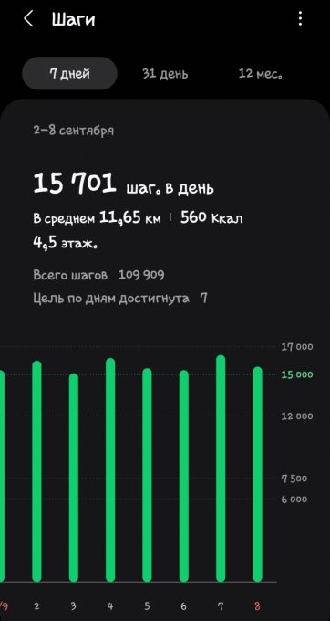 Активность в среднем 15 тыщ шагов в день и чуток велосипеда в