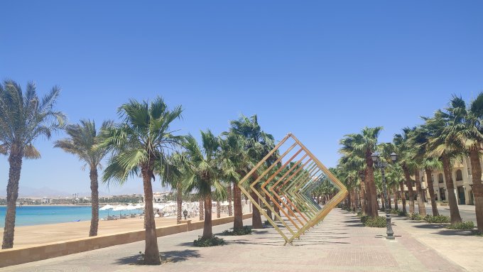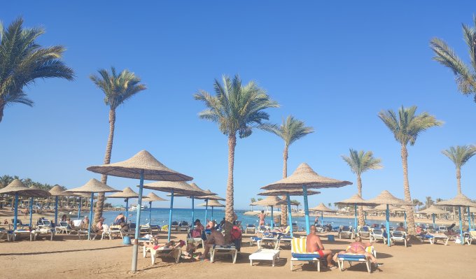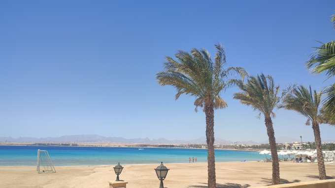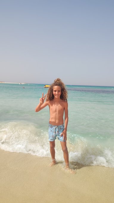 Напротив нашего дома несколько городских пляжей, но публика там только местные, я на них не чувствую себя комфортно в купальнике, женщины здесь в закрытых мусульманских одеждах. Поэтому ходили на пляж при одном из отелей. Пляж обустроенный, с шезлонгами, есть бассейн и душ, туалет. Море прохладное, особенно по сравнению с Красным, но мне было приятно охладиться после +44 градусов в Хургаде. Песочек очень приятный, мелкий, белый белый. Отлично подходит для строительства пирамид, сын оценил :)