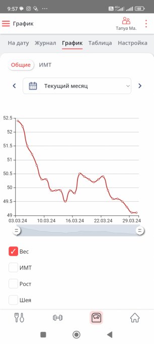 Решила воспользоваться моментом и заодно привести себя в форму и к комфортному весу 50 кг. Вес на конец февраля был 52,5 кг.