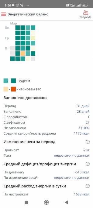 Больше года я не пользовалась приложением и не вела подсчёты. На то были личные причины.