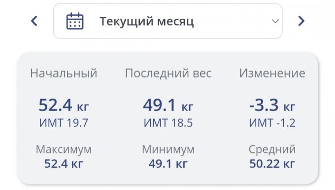 С третьей недели диета закончилась и я постепенно возвращалась к обычному рациону. Вес стал увеличиваться, прибавила потерянный ранее 1 кг, а потом вес встал, несмотря на постоянный дефицит калорий.