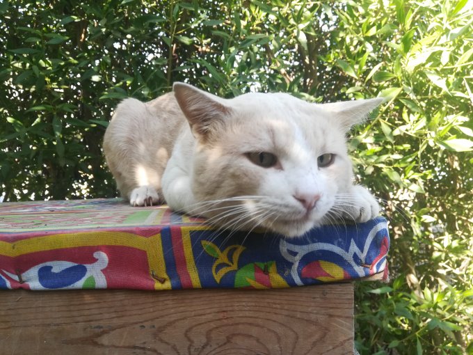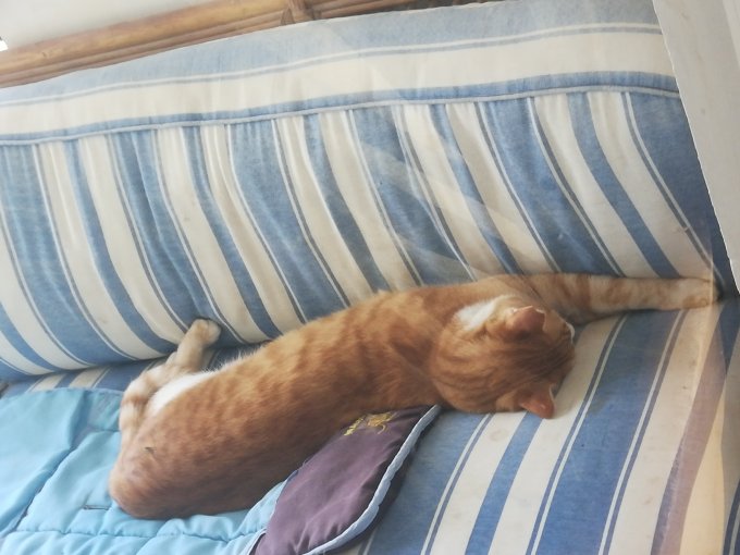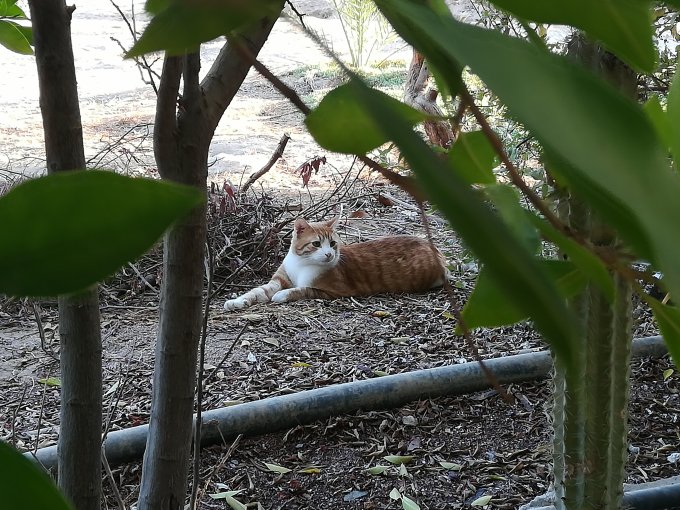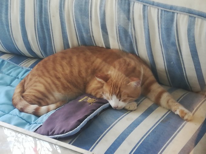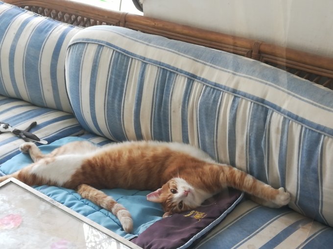 С утра порадовали котики, пришел на завтрак красивый уличный персиковый кот, поел и устроился на отдых в нашем саду, с ним была его подружка маленькая кошечка,но она стеснительная и пугливая, фотографироваться не любит, а соседский Рыжий как всегда спал на своем любимом месте у нас на балконе, а потом в саду наблюдал за Персиковым котом и его кошечкой.