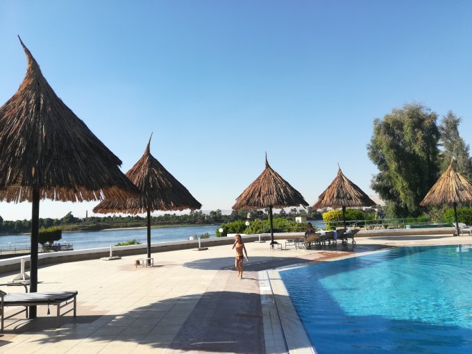 После окончания круиза мы решили не спешить домой, а ещё на несколько дней задержаться в Луксоре, чтобы продлить наш долгожданный отдых и вдоволь насладиться волнительной красотой природы юга Египта. Есть в Луксоре одно уникальное живописное место с романтической атмосферой, вдали от шума и суеты большого туристического города, где в тени многолетных размашистых деревьев можно в блаженной безмятежности расслабиться и послушать пение птиц, наблюдая за медленно проплывающими по Нилу белоснежными фелуками.