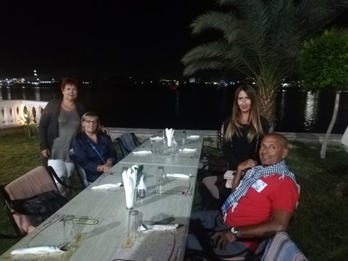 Сегодня ужинали в красивом ресторанчике на западном берегу Нила заказали местной речной рыбы - нильского карпа запеченого с овощами и жареную болти, это что-то типа тилапии. На гарнир подавали коричневый рис - это рис отваренный с хорошо зажареным луком. Помимо этого были традиционные закуски - тахина, овощной салат, маринованые овощи и свежеиспеченные египетские лепешки, а на десерт восточные сладости с крепким горячим чаем. Жаль, не додумалась сфотографировать банкет, было действительно красиво и вкусно.