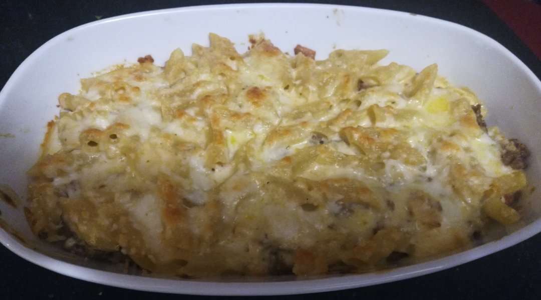 На ужин приготовила очень калорийную, но бомбически вкусную запеканку из макарон с фаршем и сыром под соусом бешамель, как ее тут называют египетская лазанья. Даже сын съел целую порцию, причем сам и без уговоров.