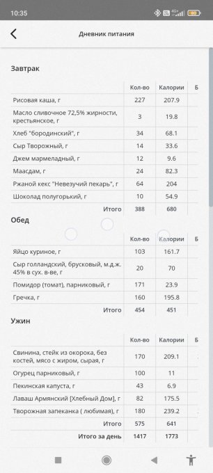| Итого за день | 3928 | 1499 | 96 | 63 | 125 |