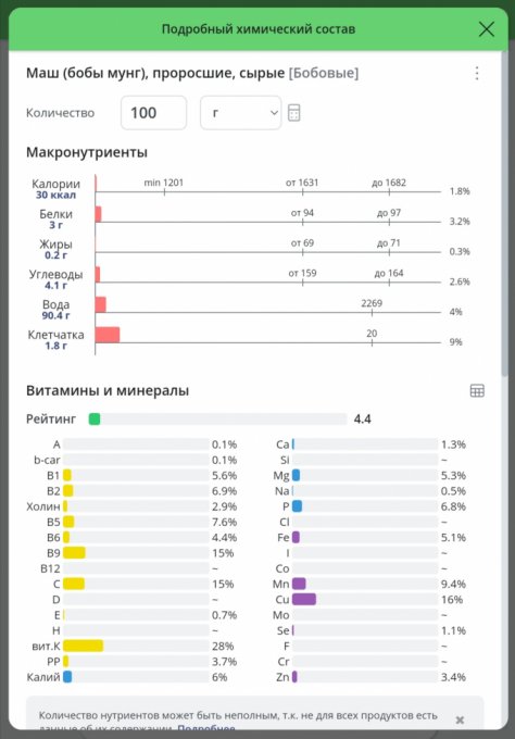 | Кол-во | Калории | Белки | Жиры | Углеводы | |