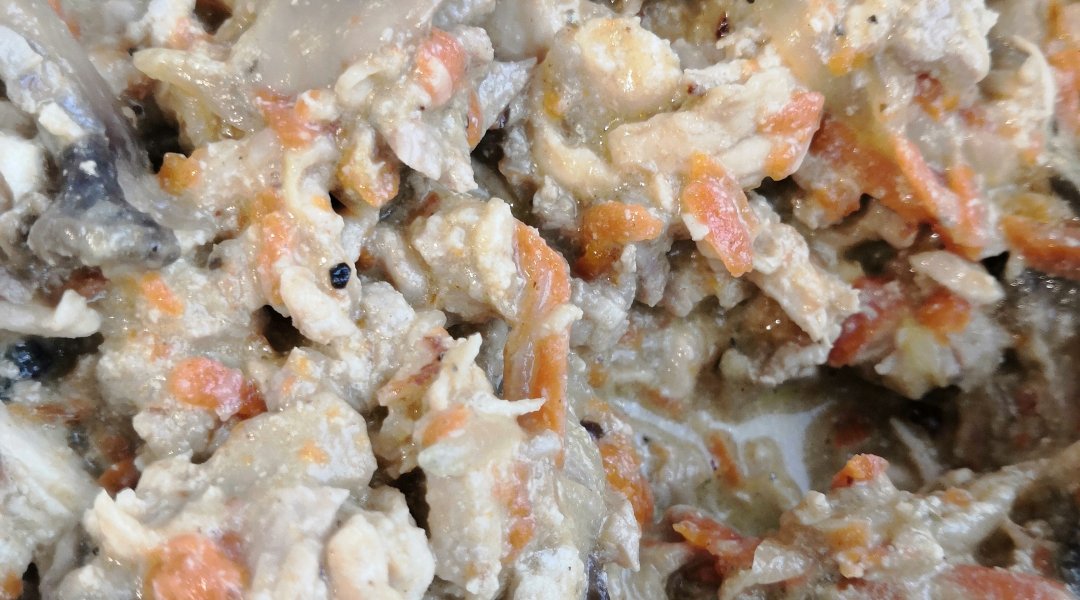 | Тушёное бедро индейки с куриной грудкой в сметане |