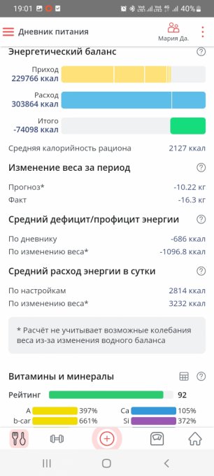 дневнику должна похудеть на 4,5 кг, в реальности похудела на 2,2