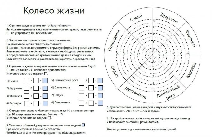 Метод «Колесо баланса жизни» по заявленной информации метод